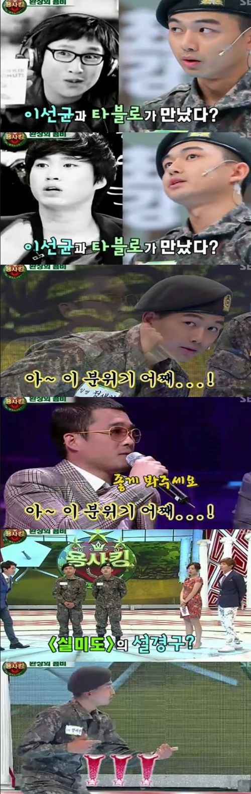 이날 성대모사 달인 정새한 일병이 출연했다. 뮤지컬 전공인 정새한 일병은 멋진 노래를 선보였고 배우 이선균을 성대모사까지 완벽하게 소화해 눈길을 끌었다.