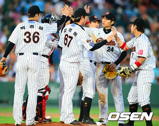 경기를 마치고 롯데 선수들이 마운드 근처에 모여서 기쁨을 나누고 있다. / rumi@osen.co.kr