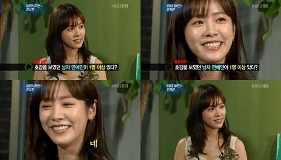 한지민은 2일 오후 방송된 KBS 2TV '연예가중계'에서 "나에게 대시한 남자 연예인이 1명 이상 있다"라고 말했다.