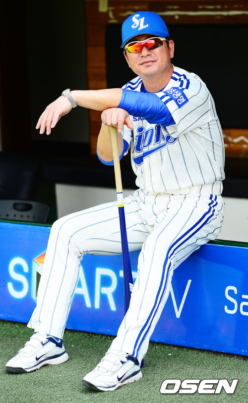 3일 오후 대구 시민구장에서 '2012 팔도 프로야구' 삼성 라이온즈와 두산 베어스의 경기가 열릴 예정인 가운데 훈련 시간에 삼성 류중일 감독이 선수들의 훈련을 바라보고 있다.