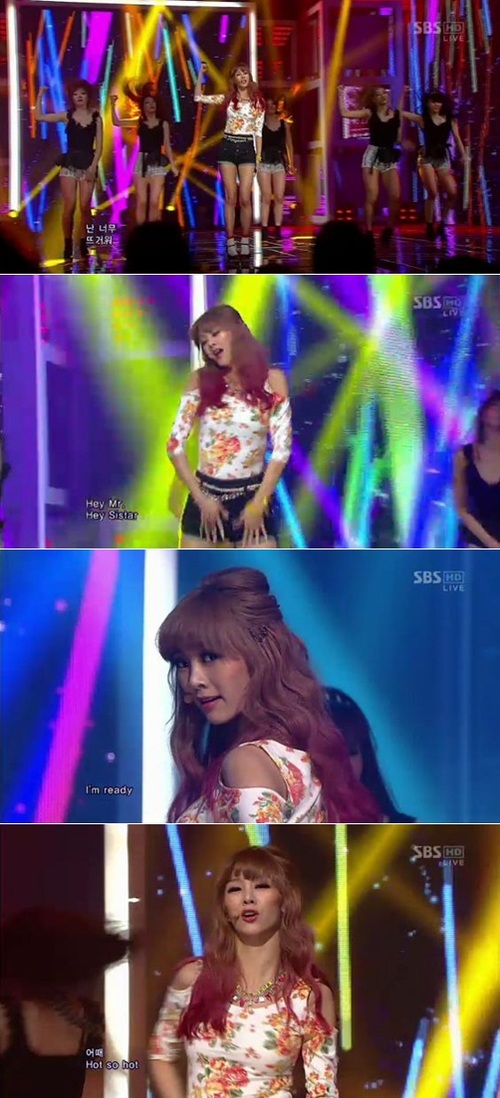 또한 격렬한 가슴 팝핀 동작과 '찰벅지춤'를 선보였고, 애교 넘치는 표정 연기와 탄력있는 몸매로 무대의 완성도를 더했다.