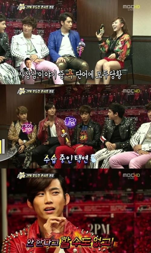 2PM은 3일 오후 방송된 MBC ‘섹션TV 연예통신’에 출연해 지난 5월 일본 무도관에서 개최한 '식스 뷰티풀 데이즈(6 Beautiful Days)' 공연 현장을 공개했다.