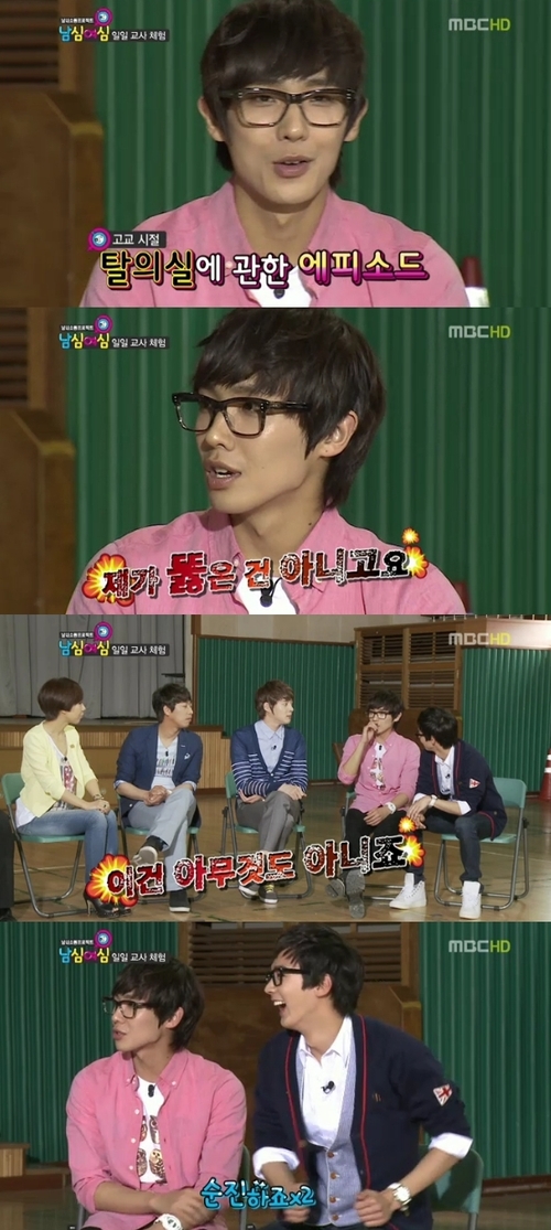한편 그룹 틴탑의 멤버 천지는 "학창시절 망원경으로 여학생 교실을 훔쳐본 적이 있다"고 전했다. 이에 대해 이준은 "순진하다"고 답해 웃음을 자아냈다.