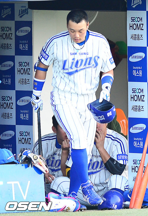 3일 오후 대구 시민구장에서 열린 '2012 팔도 프로야구' 삼성 라이온즈와 두산 베어스의 경기에서 이승엽이 덕아웃에서 나오고 있다.