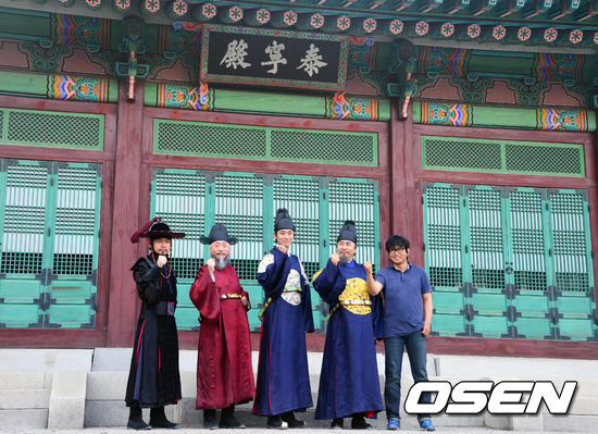 3일 오후 경희궁에서 진행된 영화 '나는 왕이로소이다' 기자회견에서 임원희 변희봉 주지훈 박영규 장규성감독이 포토타임을 갖고 있다.