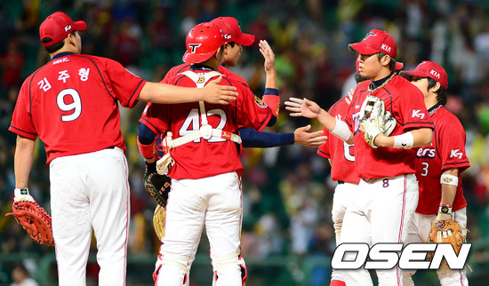 이로써 연패에서 탈출, 싹쓸이 패배 수모에서 벗어난 7위 KIA는 시즌 20승(22패 2무)째를 거뒀다. 올 시즌 SK전 첫 승(4패1무)이다. 작년 10월 5일 광주경기 이후 이어오던 SK전 6연패 사슬을 드디어 끊어냈다. 반면 SK는 시즌 19패(24승 1무)째를 기록했다. / baik@osen.co.kr