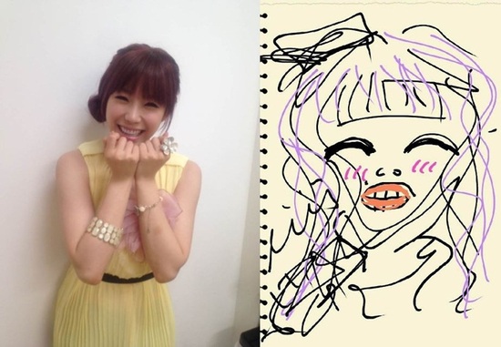 전효성은 지난 3일 오전 자신의 트위터에 "시크릿은 지금 일본. '트윙클' 프로모션 차. 시크릿타임이 보고 싶어서 애교 사진 하나. 그리고 또 하나는 너무하신 우리 징뇨가 그린 내 초상화... 캐리커처? 너무한다 징뇨"라는 글과 함께 사진 두 장을 게재했다.