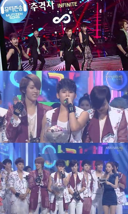 그룹 인피니트가 미니 앨범 타이틀곡 '추격자'로 1위를 차지, '트리플 크라운'을 달성했다.