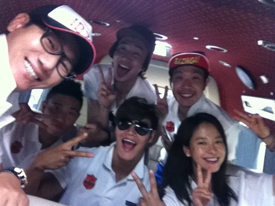 사진 속 '런닝맨' 멤버 지석진, 개리, 김종국, 이광수, 하하, 송지효는 이동 중인 차 안에서 브이를 그리며 기념 사진을 찍는 등 즐거운 시간을 보내고 있다. 모두 하얀색 티셔츠를 입고 해맑은 미소를 짓고 있어 '런닝맨'의 팀워크가 더욱 돋보인다.