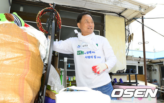 4일 오후 경기도 파주시 법원읍 법원리 해비타트 파주 현장에서 'K리그와 함께하는 사랑의 집 고치기' 봉사활동에서 울산 김호곤 감독이 짐을 나르고 있다