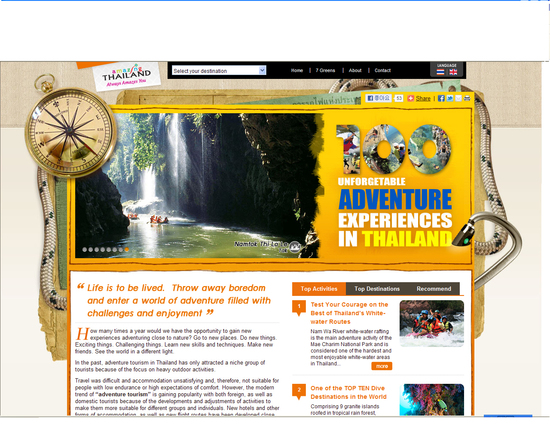 이 웹사이트는 33개 태국 지역에서 가능한 어드벤처 여행을 모두 포함하고 있으며 래프팅, 다이빙, 코끼리 정글 트레킹, 암벽 등반, 카약/카누, 동굴 탐험으로 영역이 구분 돼 있다. 또한 여행 팁, 가이드라인, 현지 자연과 문화를 보호하기 위한 정보 및 구조 시설에 대한 안내를 하고 있다.