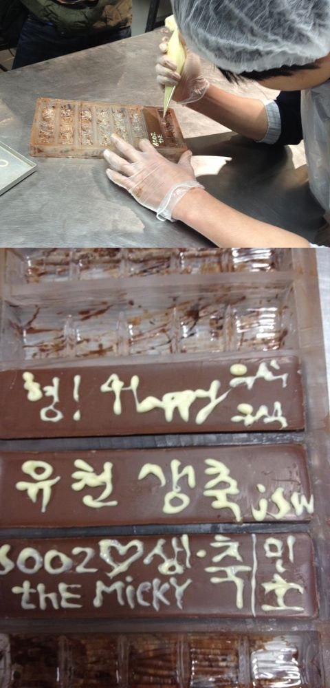 공개된 사진에는 배우 이민호가 초콜릿 위에 "6002 더 믹키(the Micky) 생축. 민호"라는 문구를 새겨 넣고 있는 모습이 담겼다.