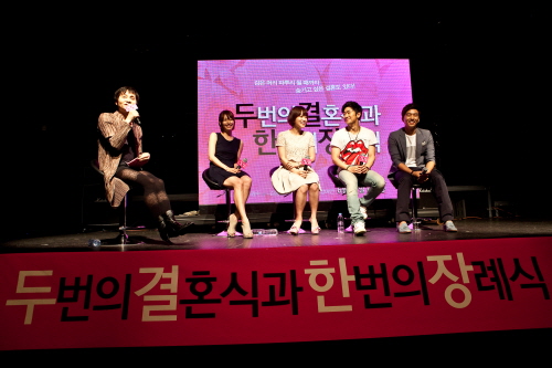 퀴어 로맨틱 코미디 영화 '두 번의 결혼식과 한 번의 장례식'(이하 '두결한장')의 피로연 파티가 지난 1일 서울 홍대 상상마당 라이브홀에서 열린 가운데, 김조광수 감독은 직접 MC를 맡아 행사를 진행했다.