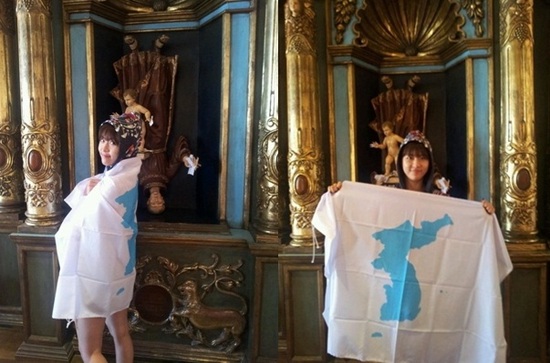 사진 속 하지원은 화보 촬영과 여행을 위해 찾은 멕시코에서도 한반도가 그려진 한반도기를 몸에 두른 채 영화 홍보에 열심인 모습이다.