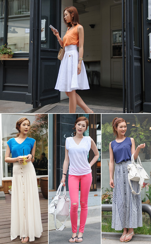 리조트에서도 도시의 세련된 이미지를 풍기고 싶은 여인이라면 시티 캐주얼 룩에 주목해보는 건 어떨까. 캐주얼한 느낌의 시티 웨어 또는 세련된 캐주얼 웨어를 지칭하는 이 스타일은 도시 특유의 세련된 이미지와 경쾌한 캐주얼 스타일이 만나 범용성 높은 룩을 완성했다.