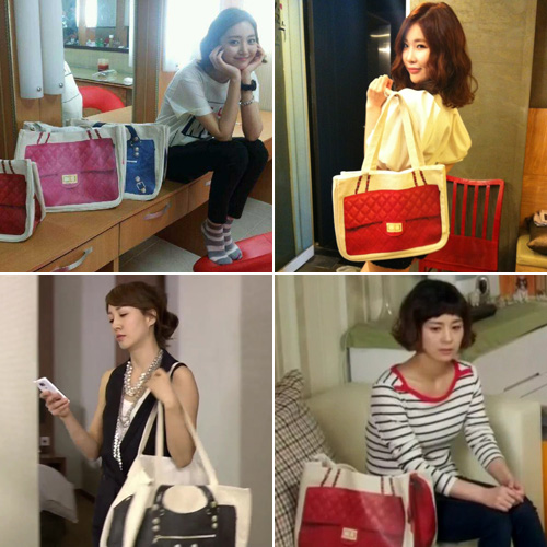 배우 고준희는 대기실 책상에 앉아 두 손을 턱에 괴고 본인이 소장한 다양한 모양의 에코백을 나란히 옆에 놓은 사진을 공개 했으며, 다비치 이해리는 화이트 블라우스에 블랙 핫 팬츠를 입고 레드 샤넬 프린트 백을 들고 가방을 뽐내는 듯한 표정을 지었다.