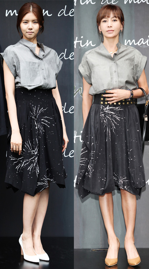 뿐만 아니라 은은한 색감이 돋보이는 기하학적 패턴이 가미된 원피스는 도회적인 느낌과 더불어 스타일리시함까지 자아냈다.
