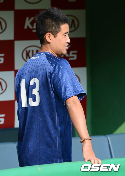 5일 오후 광주 무등야구장에서 열린 '2012 팔도 프로야구' KIA 타이거즈와 삼성 라이온즈의 경기에 앞서 삼성 장원삼이 그라운드를 바라보고 있다.
