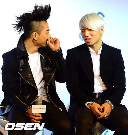 5일 오후 서울 여의도 현대카드 본사에서 YG x 현대카드 콜라보레이션 행사에서 빅뱅 태양과 대성이 이야기를 나누고 있다
