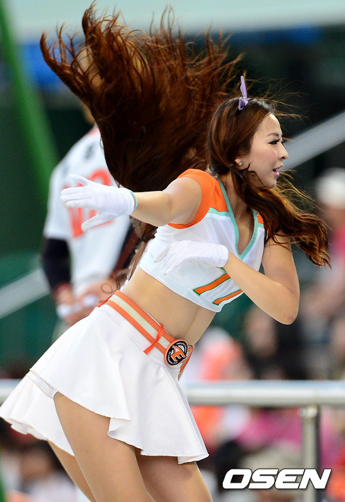 5일 오후 대전구장에서 열린 '2012 팔도 프로야구' 한화 이글스와 롯데 자이언츠의 경기, 한화 치어리더가 멋진 공연을 선보이고 있다.