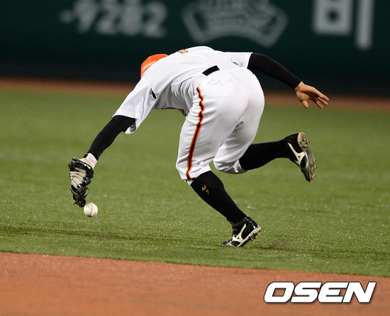 9회초 무사에서 한화 이여상이 롯데 홍성흔의 타구를 놓치고 있다. /jpnews@osen.co.kr