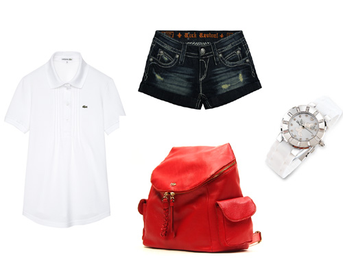 화이트와 블루에 이어, 올해의 잇 컬러는 단연 ‘오렌지’이다. 화려하고 포인트 컬러로 느낌이 강해 오렌지 컬러로만 스타일링하기가 부담스럽다면, 역시 화이트 + 컬러 공식을 이용하여 컬러로 포인트를 준다. 화이트 피케 셔츠와 데님 숏팬츠, 비비드한 오렌지 컬러의 가방을 매치한다면 상큼하고 발랄한 캐주얼룩을 연출할 수 있다.