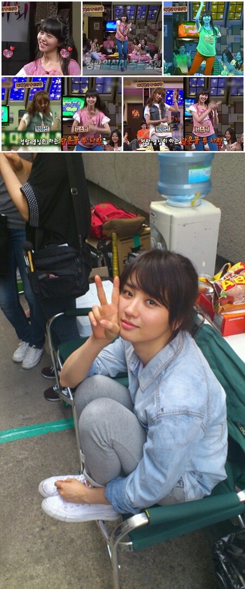 박하선은 6일 오전 자신의 미투데이에 "소현 양의 '놀러와' 잘 봤어요. 전 사실 '롤리폴리' 뮤비 4~50번 돌려보고 2주 정도 준비했던 건데"라는 글과 함께 사진을 게재했다.