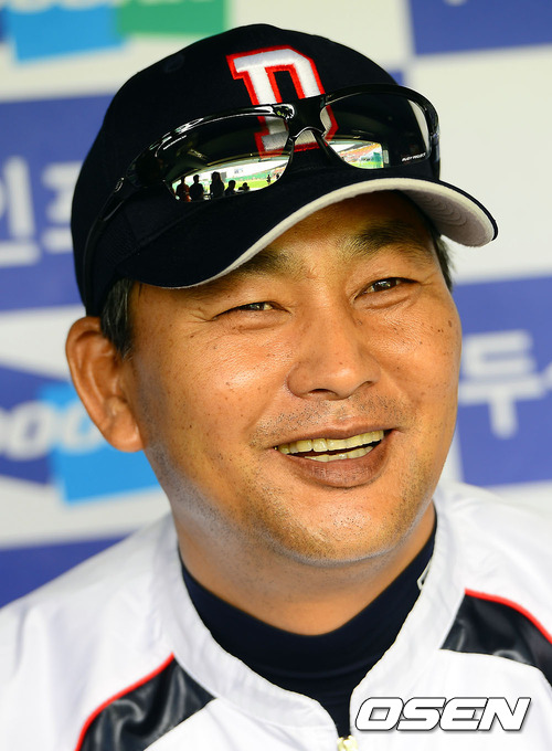 6일 오후 서울 잠실구장에서 열리는 2012 팔도 프로야구 두산 베어스와 SK 와이번스의 경기 전 두산 김진욱 감독이 미소 짓고 있다.
