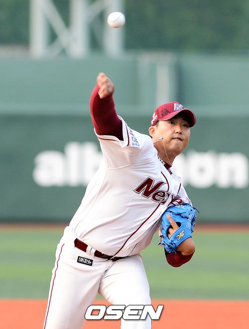 7일 오후 서울 목동구장에서 열린 2012 팔도 프로야구 넥센 히어로즈와 LG 트윈스와의 경기, 넥센 선발 김영민이 역투를 하고 있다.