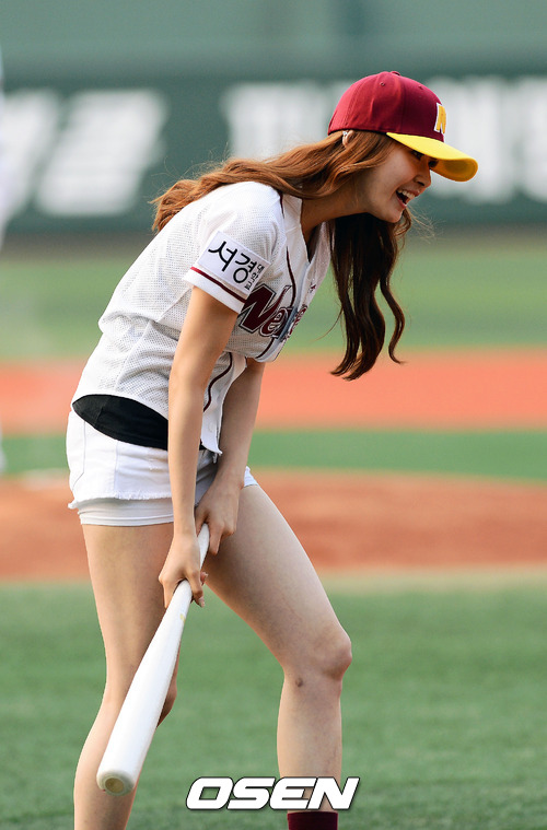 7일 오후 서울 목동구장에서 열린 2012 팔도 프로야구 넥센 히어로즈와 LG 트윈스와의 경기에 앞선 시구,시타 행사에서 걸그룹 헬로비너스 나라가 타석에 들어서고 있다.