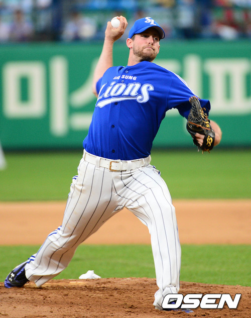 7일 오후 광주 무등야구장에서 열린 '2012 팔도 프로야구' KIA 타이거즈와 삼성 라이온즈의 경기, 1회말 삼성 선발 투수 탈보트가 힘차게 공을 던지고 있다.