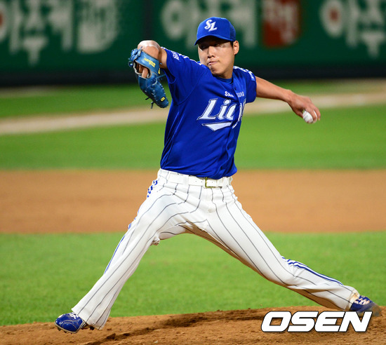 7일 오후 광주 무등야구장에서 열린 '2012 팔도 프로야구' KIA 타이거즈와 삼성 라이온즈의 경기, 6회말 1사 만루 KIA 박기남 타석때 삼성 탈보트와 교체된 차우찬이 힘차게 공을 던지고 있다.