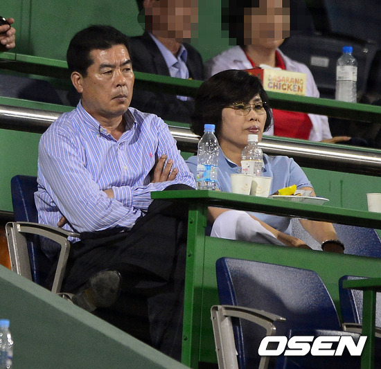 7일 오후 대전구장에서 열린 '2012 팔도 프로야구' 한화 이글스와 롯데 자이언츠의 경기, 9회초 한화가 역전을 허용하며 류현진의 승리가 날아가자 류현진의 아버지 류재천씨와 어머니 박승순씨가 아쉬운 표정으로 경기를 지켜보고 있다.