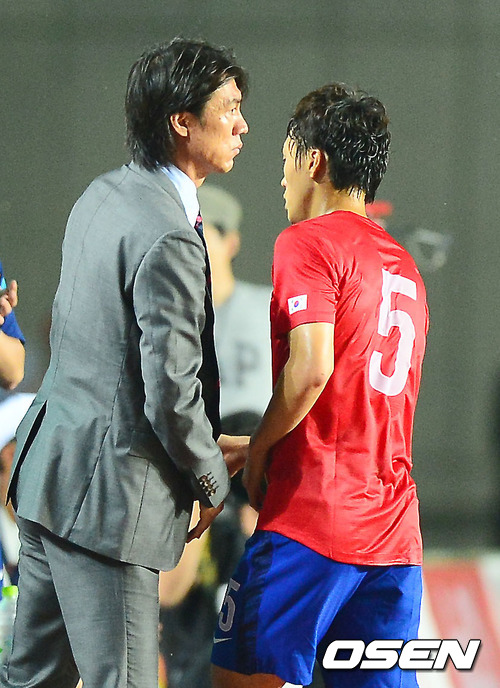 후반 올림픽대표팀 홍명보 감독이 오재석을 교체하며 악수를 나누고 있다. / rumi@osen.co.kr