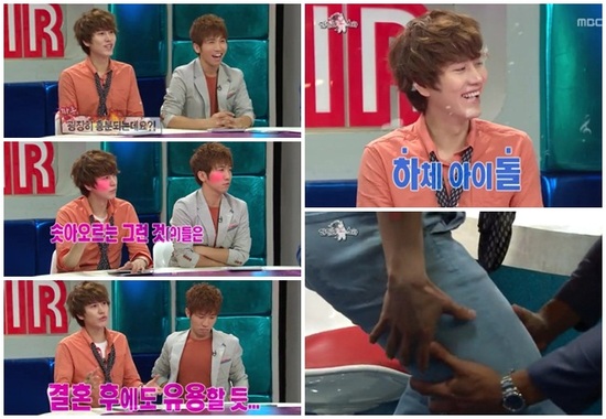 규현은 또 김동성이 쇼트트랙 선수들의 훈련 방식을 설명하며 하체운동을 위해 앉았다 일어서기를 1000회, 5세트 반복한다는 말을 듣고 "하체운동은 결혼하고서도 유용하게 많이 쓰이겠다"는 아이돌 신분으로서는 다소 과감한(?) 발언을 하기도 했다.