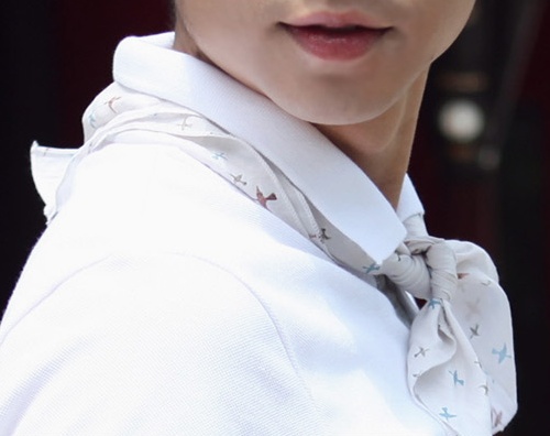같은 ‘수건’을 목에 걸치더라도 면 소재 스카프를 넥타이처럼 매거나, 길게 접은 뒤 두 번 돌려 묶어 세일러복처럼 해보세요. 그렇게 덥지 않다면 피케 티셔츠의 칼라 아래쪽에 매면 곧바로 스타일리시해집니다. 수건 대신 면 스카프를 매서 더위도 날리고 세일러 기분도 내면 옆에 있는 여자친구도 좋아할 거예요. 장담합니다!