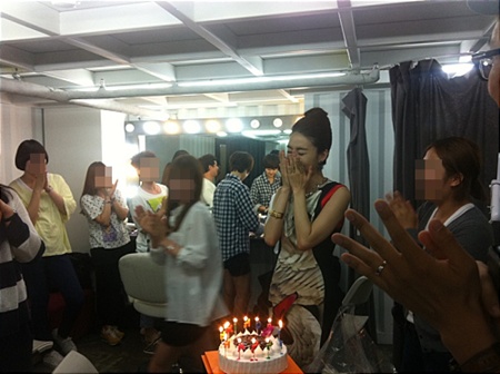 공개된 사진 속에는 대기실에서 유인나가 손으로 얼굴을 가리며 함박 웃음을 짓고 있다. 유인나의 앞에는 촛불이 꽂힌 케이크가 놓여 있고, 주변에는 많은 스태프들이 박수를 치며 유인나를 축하하고 있다. 이는 지난 5일 생일을 맞이한 유인나를 위해 스태프들이 준비한 깜짝 생일파티다.