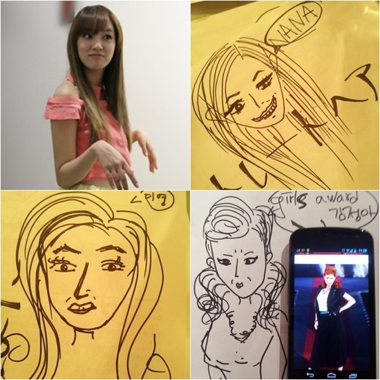 사진을 본 네티즌은 "나나가 제일 많이 닮았다", "어떻게 특징만 딱 잡아서 그렸지", "멤버들끼리 재미있게 노는구나" 등의 반응을 보였다.