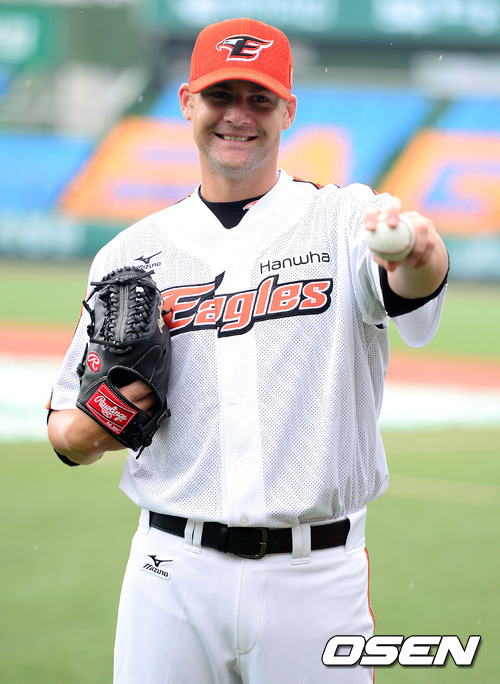 한화 대체 외국인 투수로 션 헨(31)이 포토타임을 하고 있다.