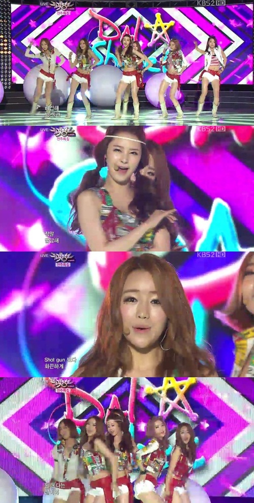이날 달샤벳은 각선미를 강조하는 핫팬츠와 잘록한 허리 라인을 강조하는 의상을 입고 등장해 시선을 사로잡았다. 멤버들의 S라인을 강조하는 무대 의상은 귀여운 이미지의 달샤벳에게 섹시함까지 더했다.