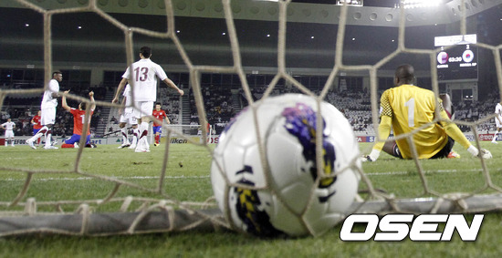 김신욱이 골을 넣은 후 환호하고 있는 가운데, 카타르 골키퍼가 주저앉아 있다. /baik@osen.co.kr