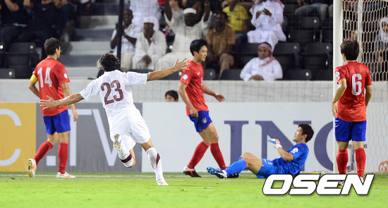 전반 카타르 유세프 아메드가 선제골을 넣고 환호하고 있다. /baik@osen.co.kr