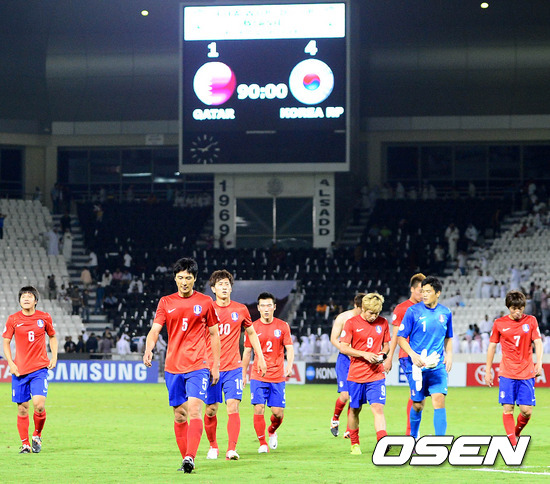 최강희 감독이 이끄는 한국 축구대표팀은 9일(한국시간) 새벽 1시 15분 카타르 도하의 알 사드 스타디움에서 열린 카타르와 2014 브라질 월드컵 아시아 지역 최종예선 1차전서 유세프 아메드에게 선제골을 내줬지만 이근호의 2골과 곽태휘 김신욱의 릴레이 골에 힘입어 4-1의 대역전승을 만들어냈다. 이로써 승점 3점을 획득한 한국(+3)은 이란(+1)에 골득실에서 앞서며 A조 선두에 올랐다.