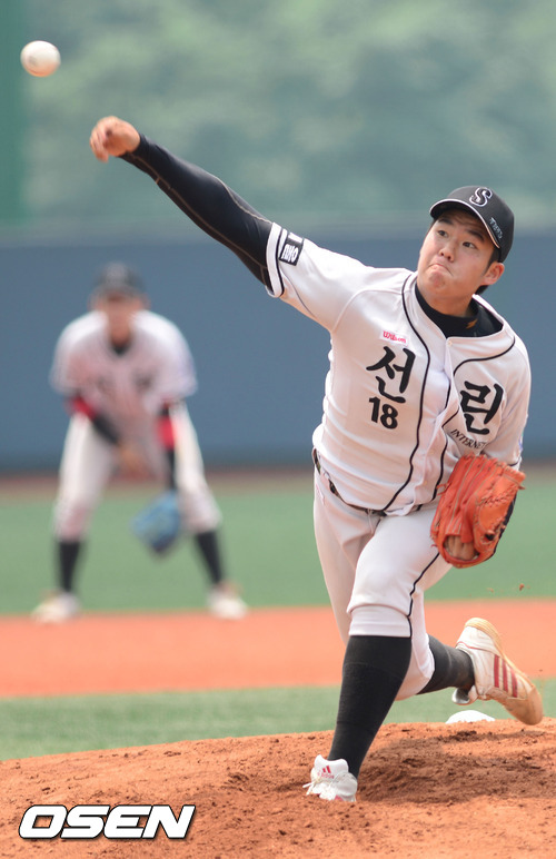 9일 오후 서울 신월동 신월야구장에서 열린 '2012 고교야구 후반기 리그' 충암고와 선린인고의 경기, 1회초 선린인고 윤현진이 역투하고 있다.