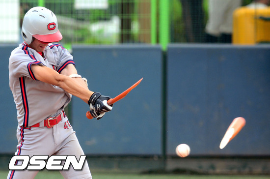 9일 오후 서울 신월동 신월야구장에서 열린 '2012 고교야구 후반기 리그' 충암고와 선린인고의 경기, 6회초 충암고 이진석이 타격을 하고 있다.
