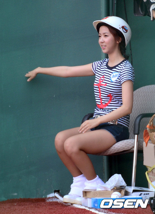 9일 오후 부산 사직야구장에서 열린 '2012 팔도 프로야구' 롯데 자이언츠와 KIA 타이거즈의 경기, 1회말 롯데 배트걸 신소정 양이 응원을 펼치고 있다.