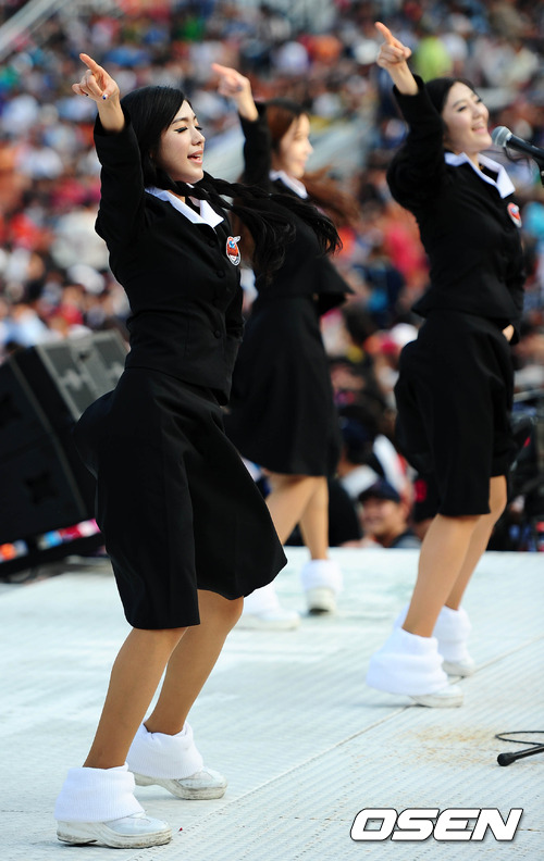 9일 오후 부산 사직야구장에서 열린 '2012 팔도 프로야구' 롯데 자이언츠와 KIA 타이거즈의 경기, 롯데 치어리더들이 화려한 공연을 펼치고 있다.