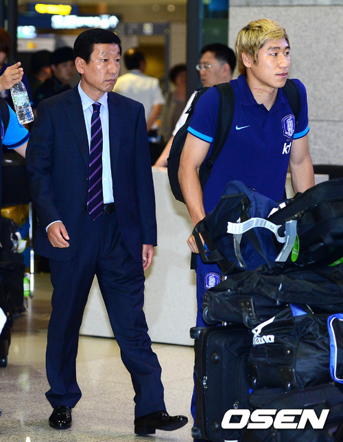 9일 오후 카타르와의 2014 브라질 월드컵 아시아지역 최종예서 1차전 경기를 마치고 인천국제공항을 통해 입국한 최강희 감독과 이근호가 입국장을 빠져나오고 있다.