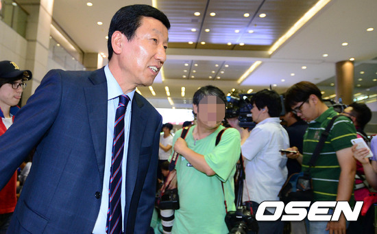 9일 오후 카타르와의 2014 브라질 월드컵 아시아지역 최종예서 1차전 경기를 마치고 인천국제공항을 통해 입국한 최강희 감독이 취재진들과 인터뷰를 마치고 걸어가고 있다.