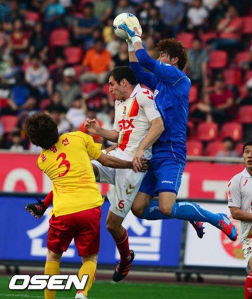 9일 오후 성남 탄천종합운동장에서 열린 2012시즌 현대오일뱅크 15라운드 K-리그 성남과 경남FC 경기에서 하강진이 공을 잡고 있다.